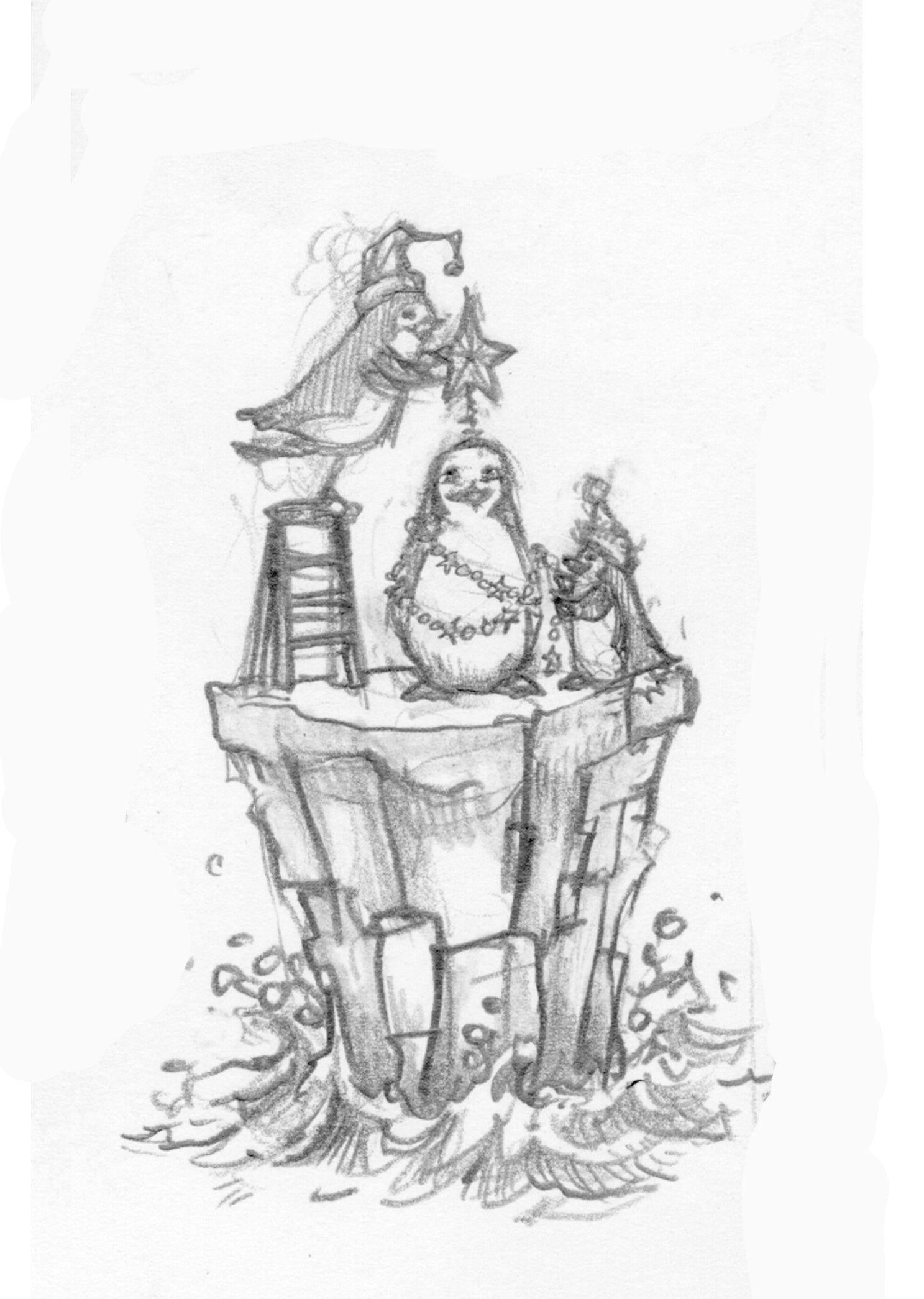 This is the only sketch that I did for The Penguin Tree. I was having a really great sketching session, and in addition to the idea for this image, a lot of great ideas came from it. I love it when that happens. It’s so much fun!