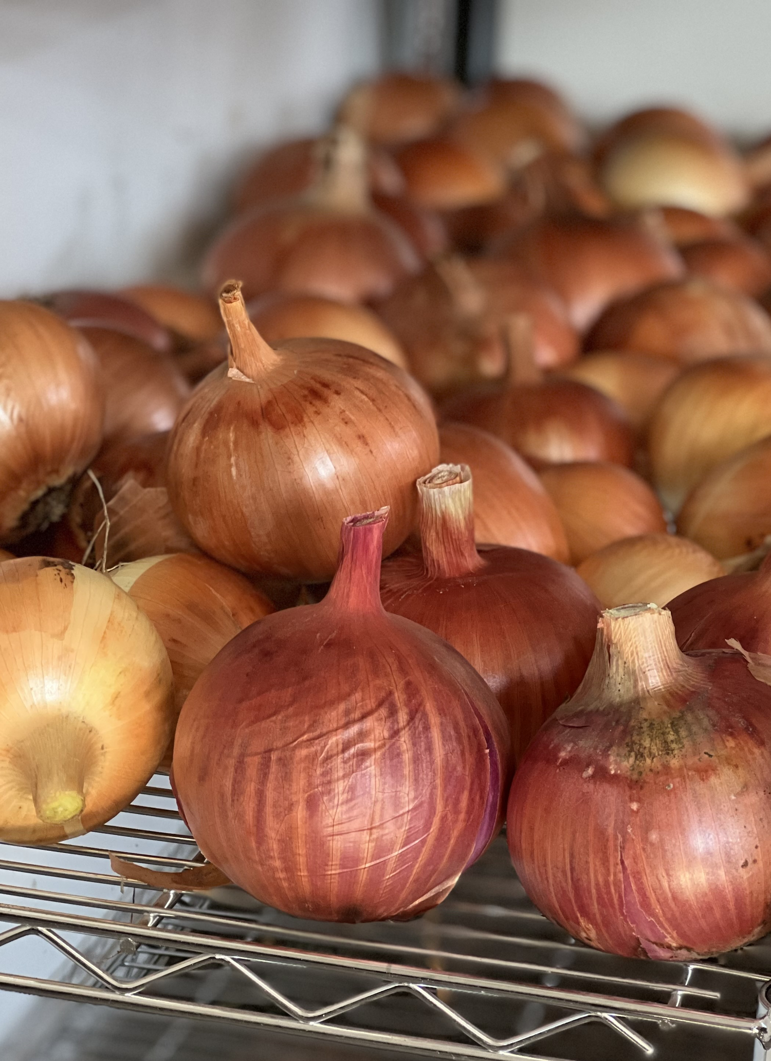 Growing onions is a deeply satisfying and rewarding part of gardening, but it doesn’t end there. The rewards reach deep into the winter months when the winds are howling outside and I don’t dare leave my house to go to the grocery store. Swapping clunky winter boots for fuzzy slippers, I'll bounce down the stairs to my basement where I store my precious, pungent beauties, and pick to my heart’s delight for whatever cozy concoction I’m making that evening.