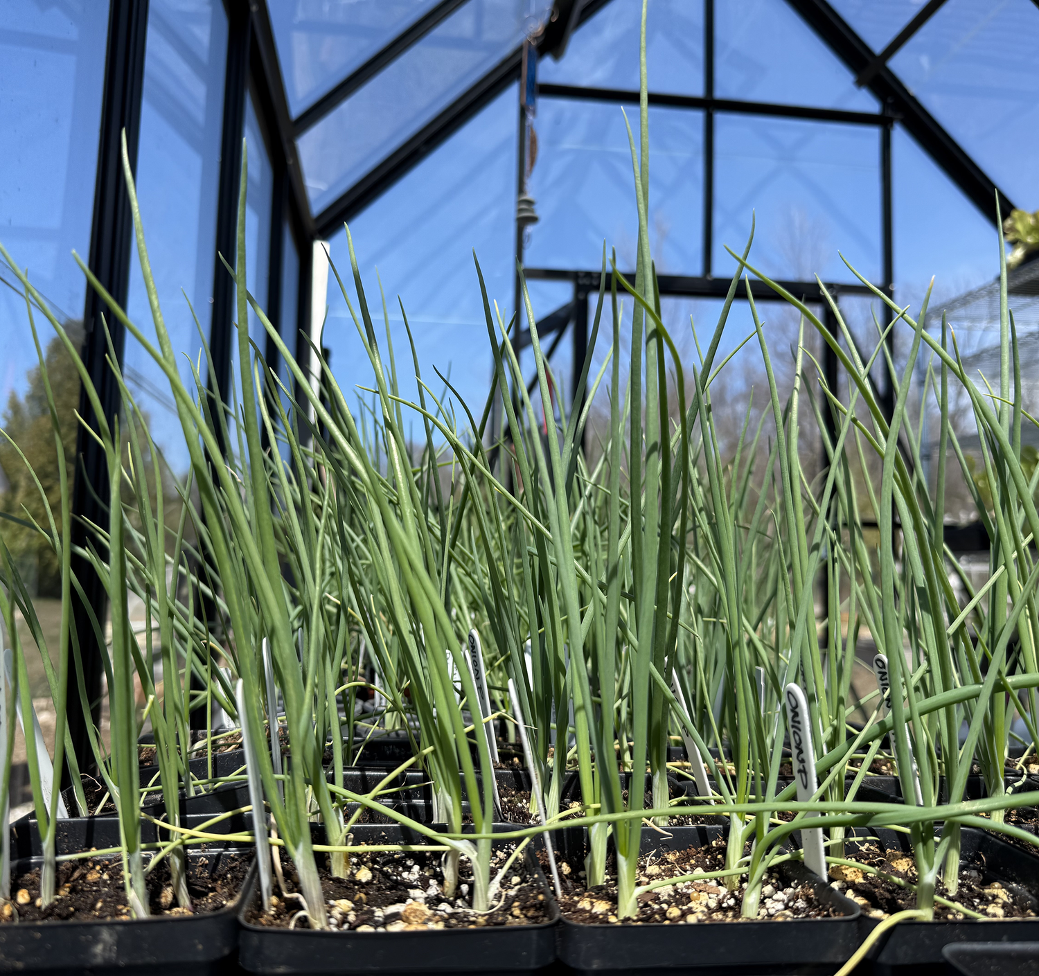 As I sat in my greenhouse staring at a sea of 400 little grassy seedlings, gently waving with each passing of the fans, a jolt of panic set over me. What had I done??? There were only two of us. How many onions can two people eat? And even more so, where oh where was I going to plant all of them?