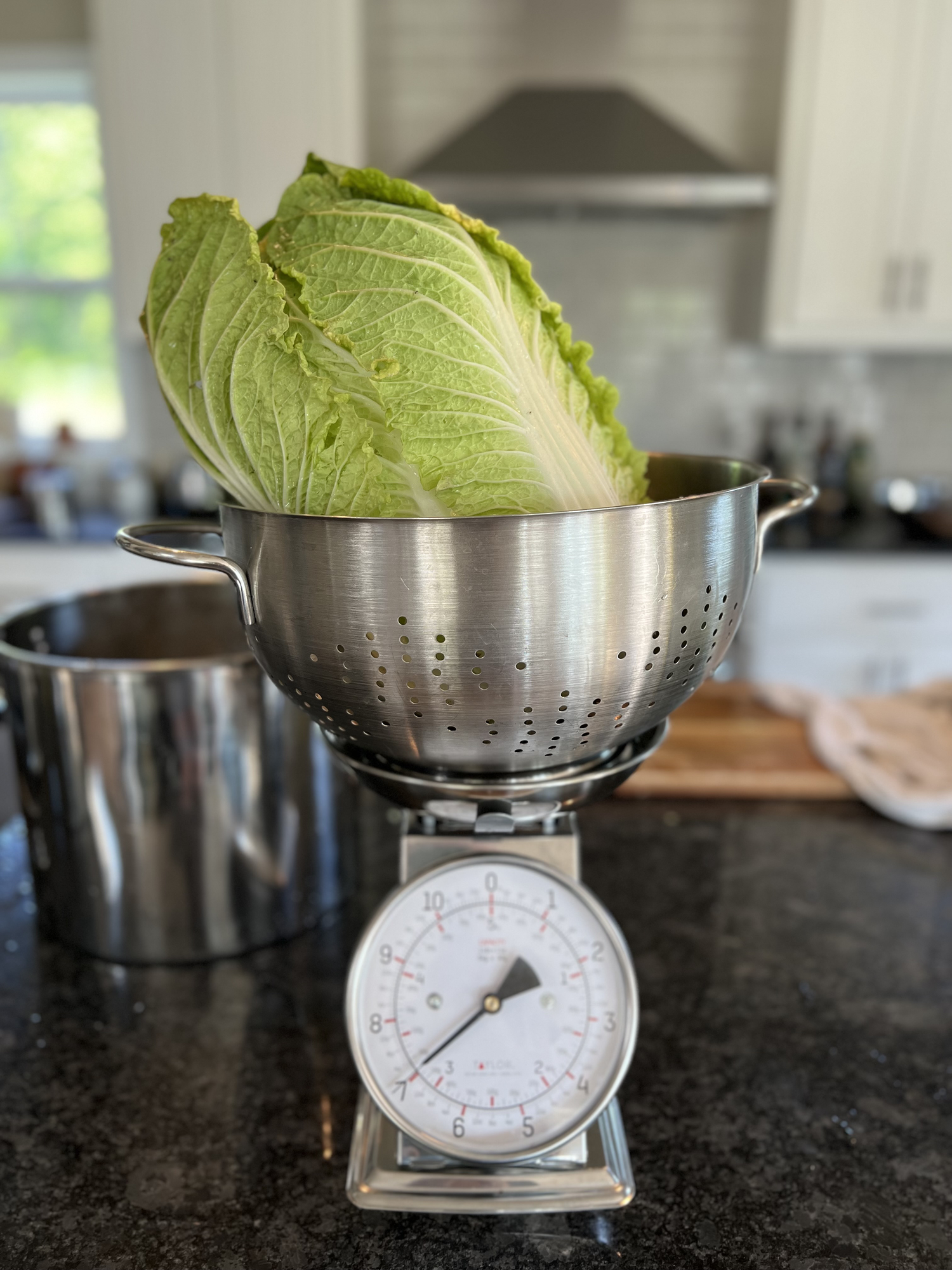 Most heads of Napa cabbage are around four pounds or so. Occasionally, I get a beast. This one weighed in at 7 pounds.